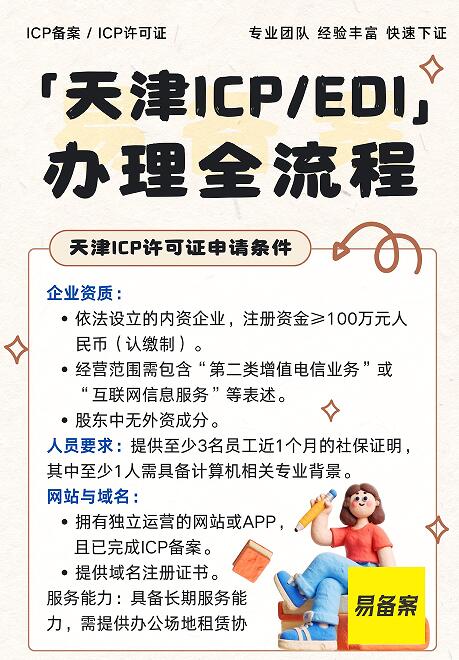 EDI许可证的申请条件与ICP类似,但需额外提供以下材料: