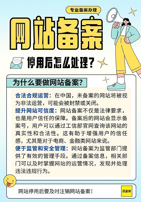 网站备案信息与个人或企业的信用记录密切相关。如果一个不再使用的网站长期处于备案状态,可能会因为疏于管理而出现违规问题,进而影响到个人或企业的信用评价。