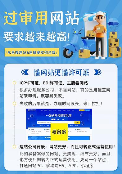 比如易备案做的网站,更美观、细节更好,而且也方便后期转为正式运营使用。更可一个站点,打通网站PC、移动端H5、APP、小程序。