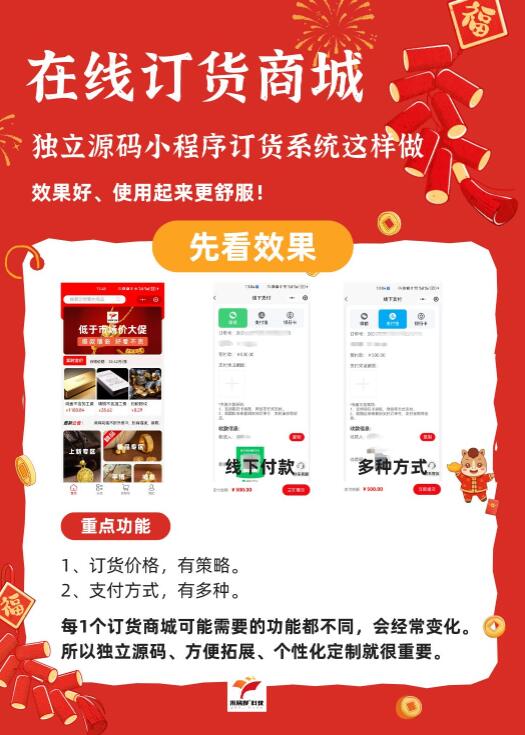 每1个订货商城可能需要的功能都不同,会经常变化。所以独立源码、方便拓展、个性化定制就很重要。