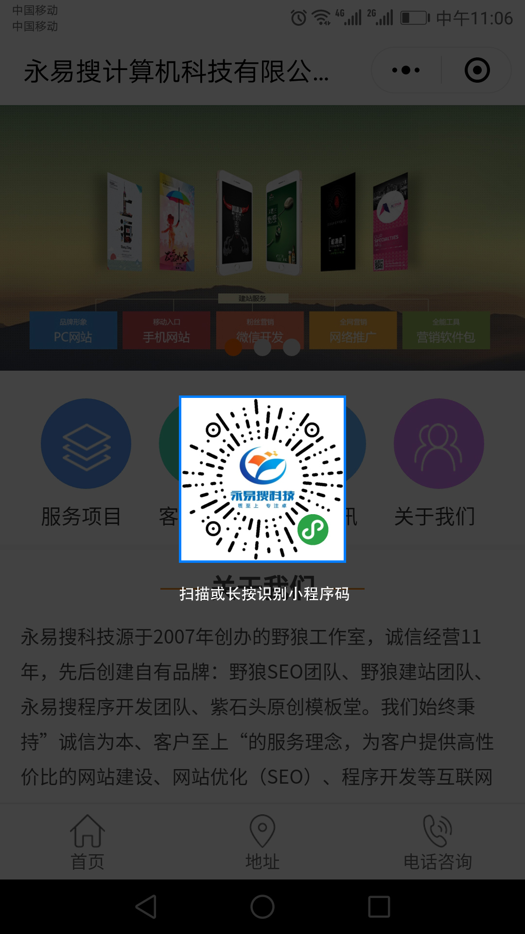 2019/10-25我司只提供物美价廉的小程序开发和搭建服务。对于企业站来讲,如果拥有小程序,会使用起来跟方便一些。永易搜科技就在微信和百度上同时建立了小程序,能起到很好的引流和宣传作用。