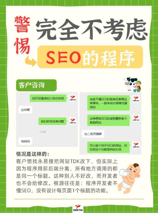 客户想找永易搜把网站TDK改下,但实际上因为程序用前后端分离,所有地方调用的都是同一个标题。这种别人不好改,而开发者也不会给修改。根源往往是:程序开发者不懂SEO,没有设计每页面1个标题的功能。